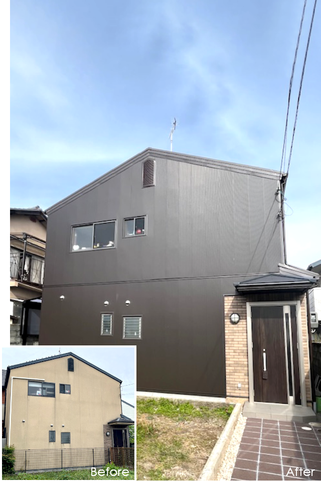 中古住宅への転居から1年以上リフォームでお世話になり、今回は最終の屋根・外壁・外構でした。外壁の古さや色がずっと気になっていましたが、今回好みの色の外壁(サイディング)となり、毎日帰宅するのが楽しくなりました。